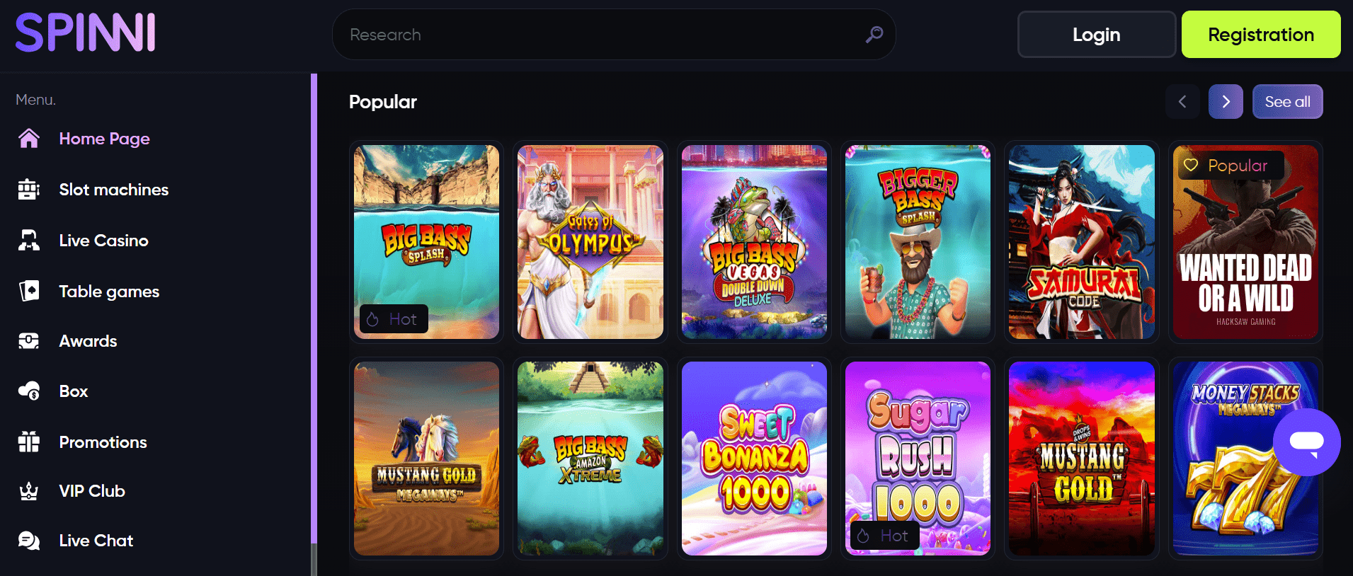 Spinni Casino collaborates with top-tier gaming providers, allowing you to enjoy a wide variety of video, jackpot, and Megaways slots, as well as numerous live and table games. The latter comprises various types of Blackjack, Poker, Roulette, and more.