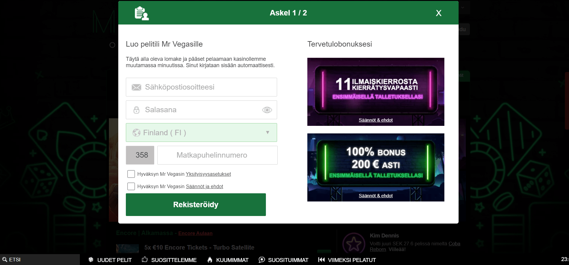 Vain uudet pelaajat. Säännöt ja ehdot ovat voimassa. 18+
